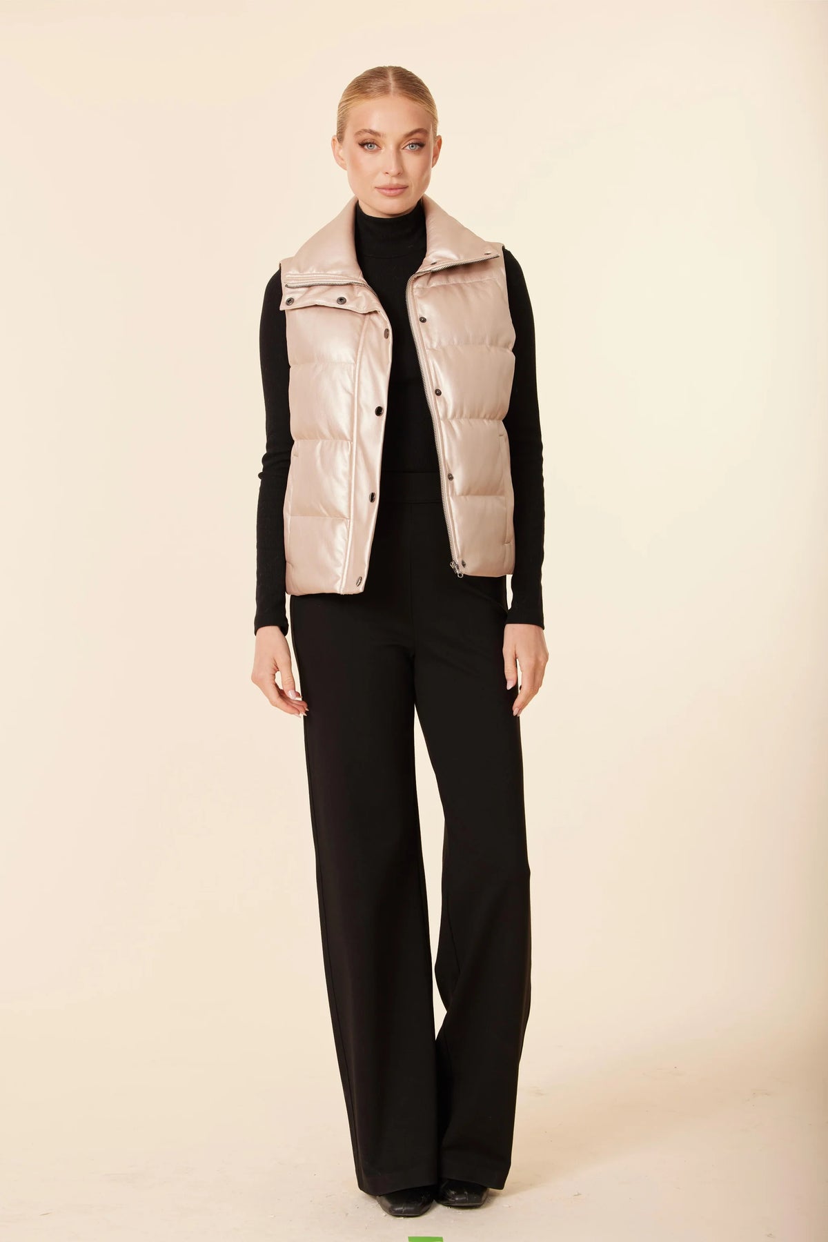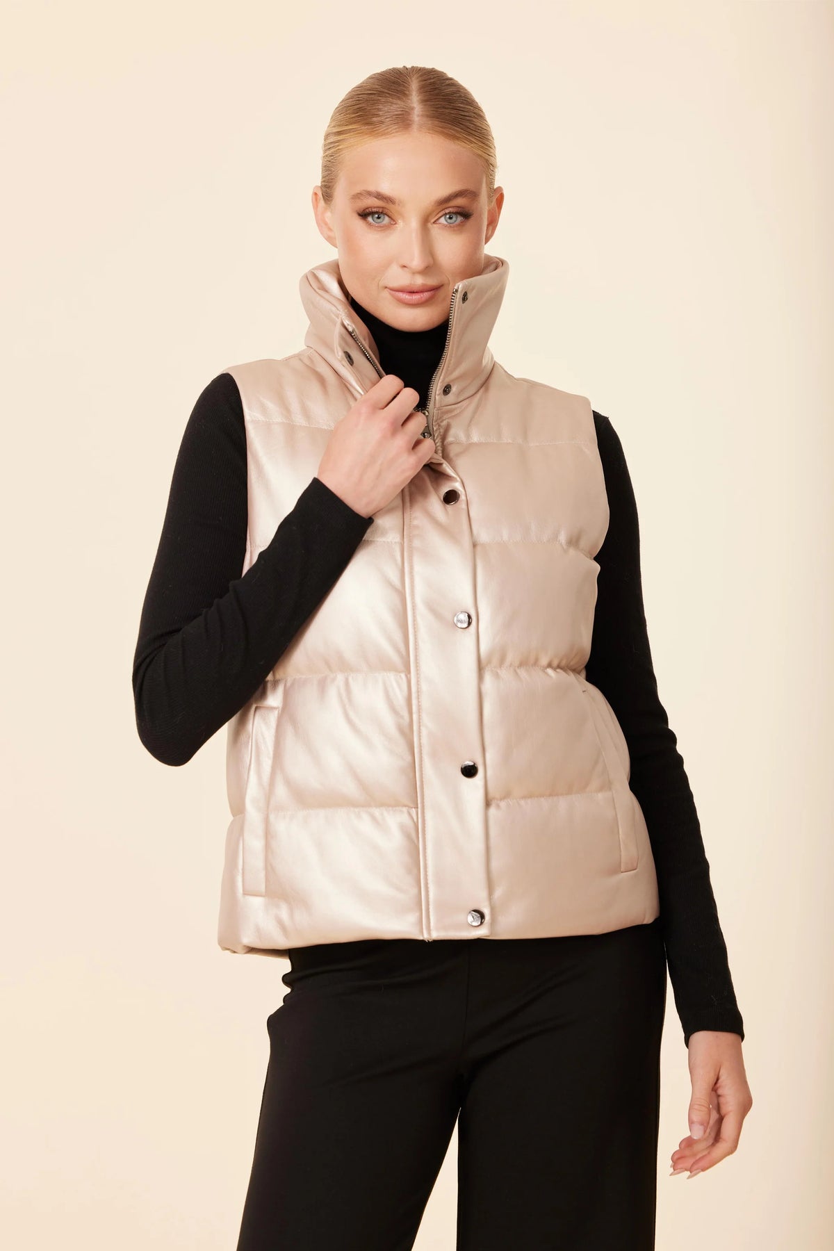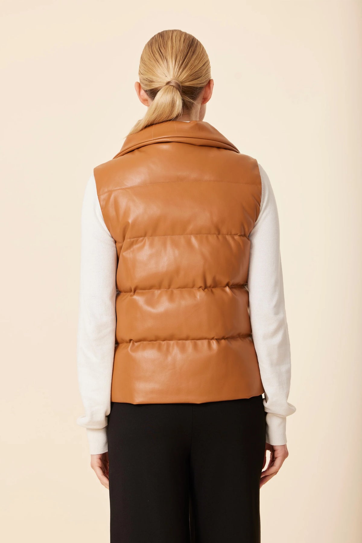 Regular price $139.95 Save $-139.95Stay warm and on-trend this Fall with our faux leather puffer vest, featuring a high stand collar, snap-button closure, and sleek puffer design. Perfect for layering over sweaters or knits, this cruelty-free outerwear piece combines modern casual style with cozy comfort—ideal for chic autumn and winter looks.