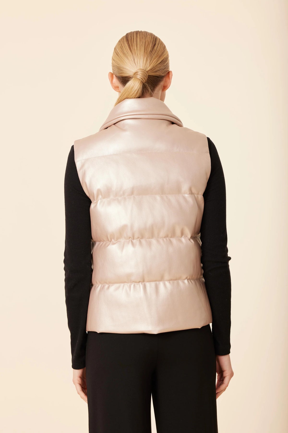 Faux Leather Puffer Vest-Pale Gold