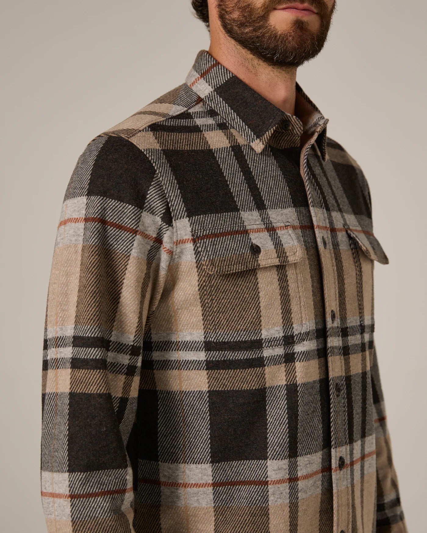 Regular price $139.95 Save $-139.95A brushed herringbone shirt jacket featuring 2 front pockets, 2 side pockets, and adjustable cuffs. Crafted from a double-knit jacquard weave fabric that promises unmatched softness and all-day comfort.