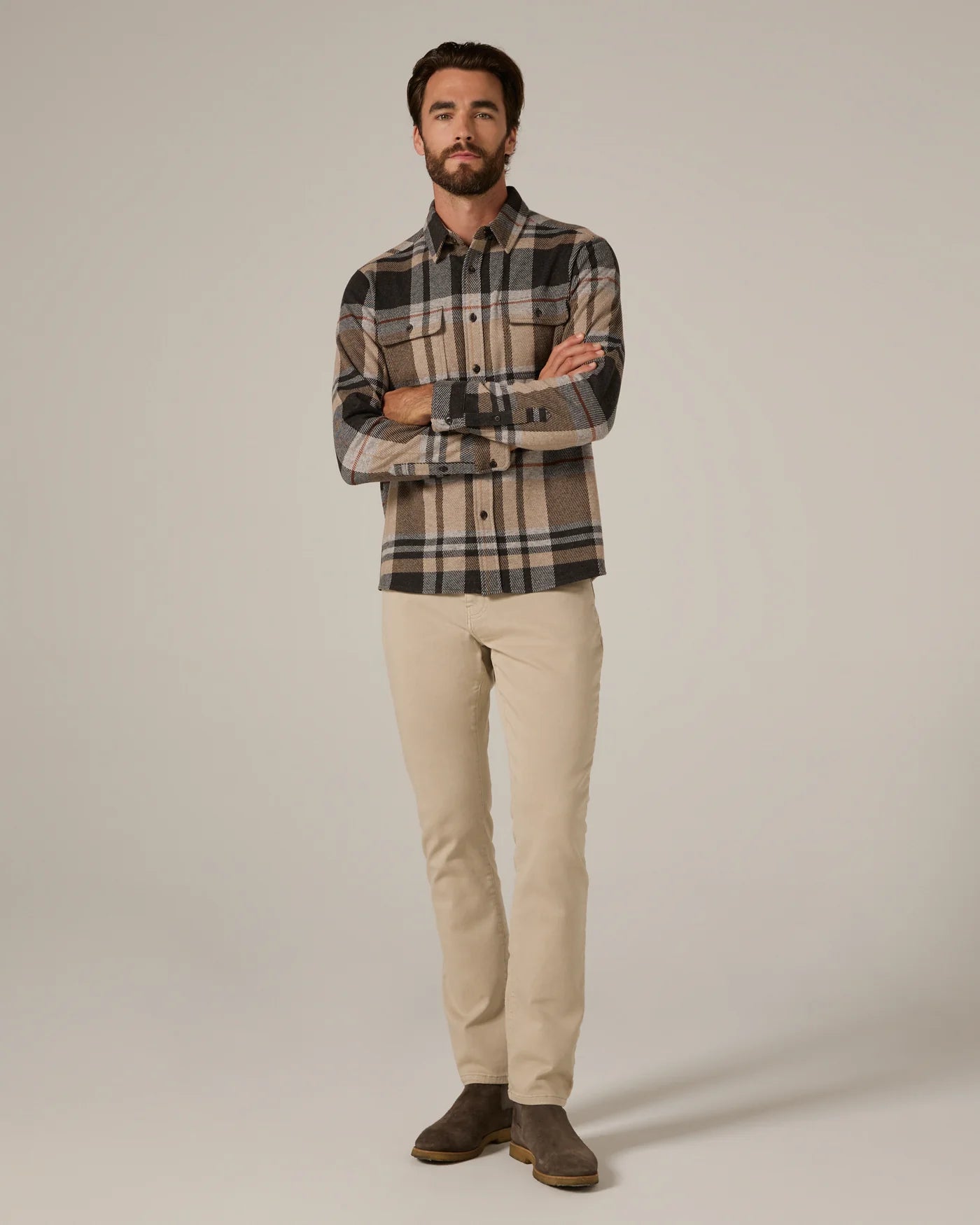 Regular price $119.95 Save $-119.95This soft-touch, double-knit jacquard shirt pairs a designer-made plaid pattern with 4-way stretch for all-day comfort. Finished with chest flap pockets, faux-horn buttons, and a curved hem for a clean, tailored look.