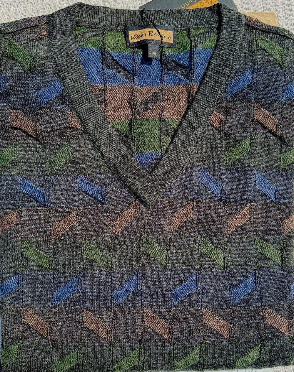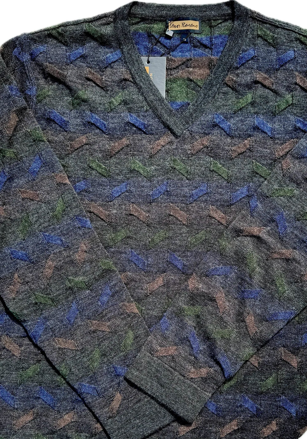 Jacquard Sweater Color Block Pullover-Black/Grey/Vanilla