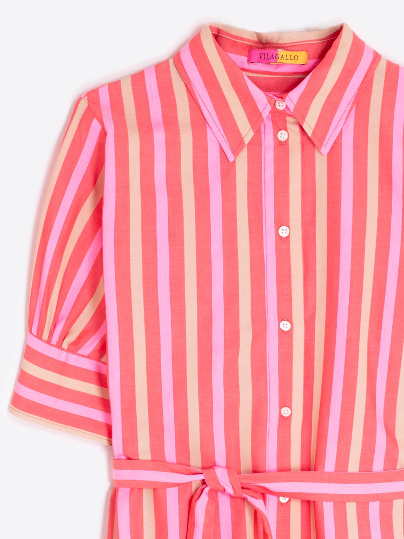 This silky knit dress perfectly fuses classic fashion and modern sophistication. The shirt collar with zipped neckline infuse a hint of boldness while the long puffed sleeves with cuffs and shirring bring a romantic flair to the design. The trapeze silhouette featuring chic leatherette accents…